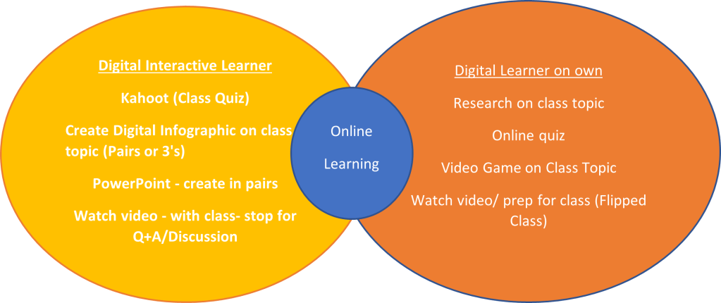 We are a few years on from this article, and there is no doubt that students whose whole senior schooling has incorporated laptop/tablet use in the classroom, in both online learning at times during Covid19, or in person, see digital interactions as the norm. It’s not just teachers though, who experience anxiety or performance anxiety around tablet use. Students themselves are at various skill and comfort levels of technology use. Teachers/Instructors need to make sure that technology use is indeed as multidimensional as ChinLin suggests. My thinking around this suggests a combination of interactive and solo platforms (Interactive – with other classmates, and solo – on their own). See the Diagram above. With this diagram in mind, anxieties around tablet use need to be mitigated by ensuring that both instructor and students understand that they are learning together in a school community and combining their common resources to give direction to teaching and learning.