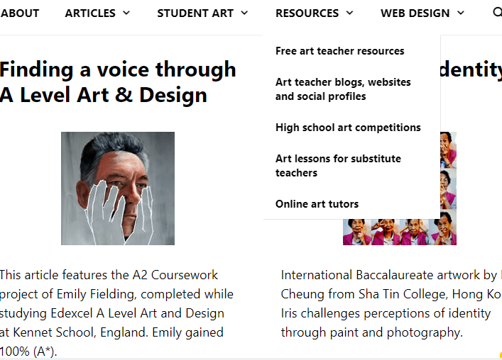 There is a lot of student-led dialogue about projects on the sites so my students would benefit from the resource; its not just for me. It has a Subject Centred approach with strong links back to historical canons in art and art history. Slight downside – This is a Eurocentric website and that angle needs some changes in a Canadian/ North American setting. But, new technologies are also explored and referenced. Social issues form much of the teenage subject matter such as Identity, Body image, Social expectations, Gender, Refugee crises & Displacement, or Anxiety – which are cross cultural issues. This tends to be student driven and add to research and inquiry. There is a remarkable showcase of student work of the highest quality. Navigation is easy throughout the site and there are tons of tempting pages and art topics. One aspect is the student portfolio recommendations.